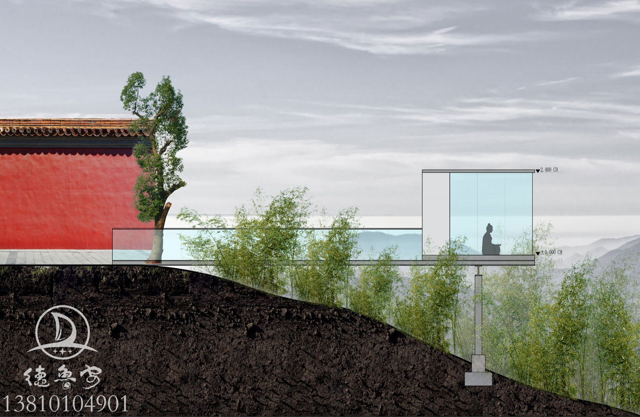 项目位于玉皇古宫内,离大殿广场不远处的山坡上,离广场地平面大约3米高差,周围均为大片竹海。